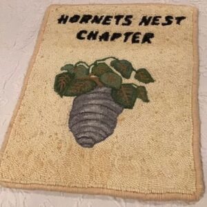 The Hornets’ Nest Rug Hookers became an ATHA chapter in 1999, and we hosted the ATHA Biennial in Charlotte, NC in 2003. In 1996 Charlotte rug hookers found each other through the efforts of Virginia Hall, now deceased, who contacted ATHA for the names and contact information of any members living in the Charlotte area. Virginia then called everyone on that list and invited them to a luncheon at her house in honor of her friend Anne Asheworth of Green Mountain Rugs in Vermont. Anne was passing through Charlotte on her way to teach in Atlanta. Only a few of us at that luncheon knew each other, but we bonded over our love of rug hooking and plans were made to get together monthly to hook.